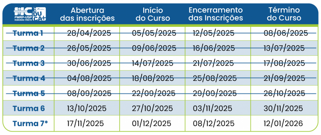Aulas ministradas por um corpo docente com extensa experiência, que pode impactar positivamente na rotina de trabalho e no cuidado com o paciente e acompanhante.